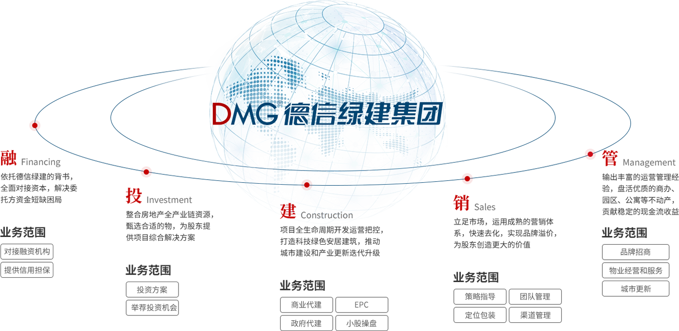 德信绿建集团有限公司是德信中国旗下专注于为全球范围的合作伙伴提供全产业链咨询服务、投融资开发运营一体化服务、绿色科技创新服务的集团公司。
